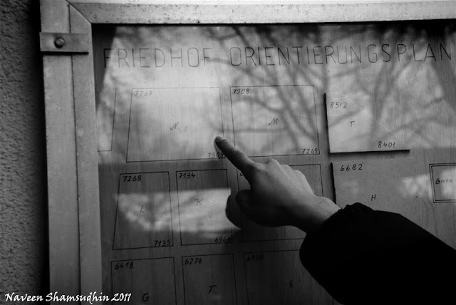 With no other clue than the cryptic statement in his memoir, and the fact that Felix Bloch was Jewish, we set out with the addresses of the twenty or so graveyards in Zurich. The city center of Zurich lies nestled between several hills, and most of the friedhofs (german for cemeteries) were located on hillsides overlooking the city. So much for the help from the note! Maybe he was an atheist, but the chances of him being buried in a jewish friedhof were high. We decided to check the twin jewish cemeteries at Friesenberg. A short walk from the Friesenberg railway stop on the S10 line going up to Uetliberg, we arrived at the Israelitischer Friedhof (Unterer Friesenberg). A frosty January morning, there was not a single soul in the cemetery. We noticed a wooden hoarding of the Orientierungsplan (Direction Plan) , damaged and decaying, the moisture seeping in through the broken glass paneling.